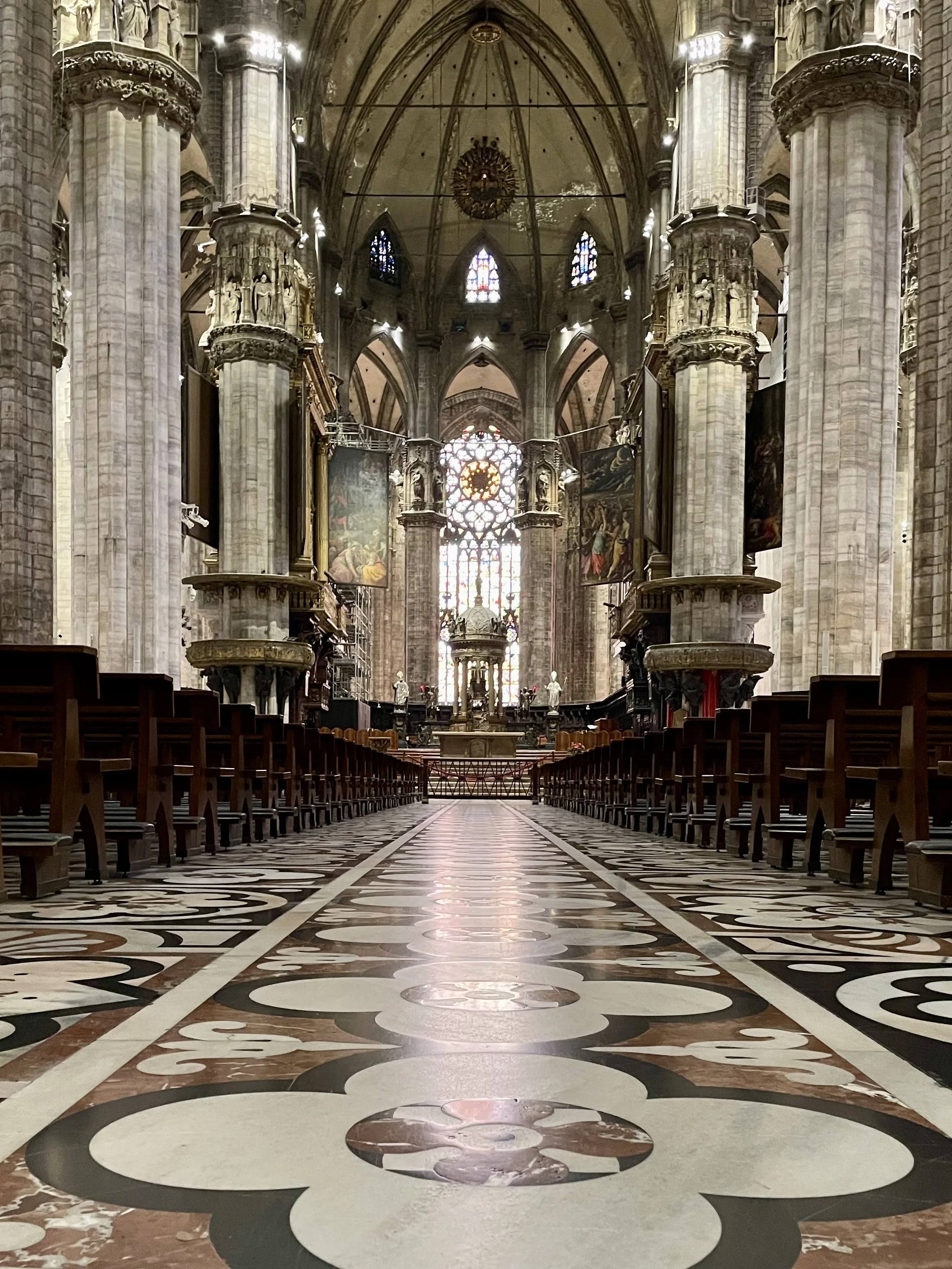 How much can one squeeze into a day in Milan — a lot. Even with the stifling heat and humidity, we were able to hit all the major notes, from visits to La Scala opera house (treated to a live orchestral practice), the Duomo (inside, underground, and above), Sforzesca castle, Leonardo’s Museum, and a walk through the shops of Galleria Vittoria Emanuele.